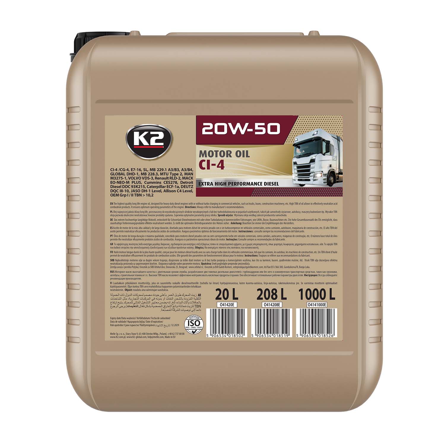 MB 229.1, GLOBAL DHD-1, MD 228.3, MTU Type 2, MAN M3275-1, VOLVO VDS 3, Renault RLD-2, MACK E0-NEO-M PLUS, Cummins CES20078, Detroit Diesel DDC 93K215, Caterpillar ECF-1a, DEUTZ DQC III-10, OEM Grp I/II